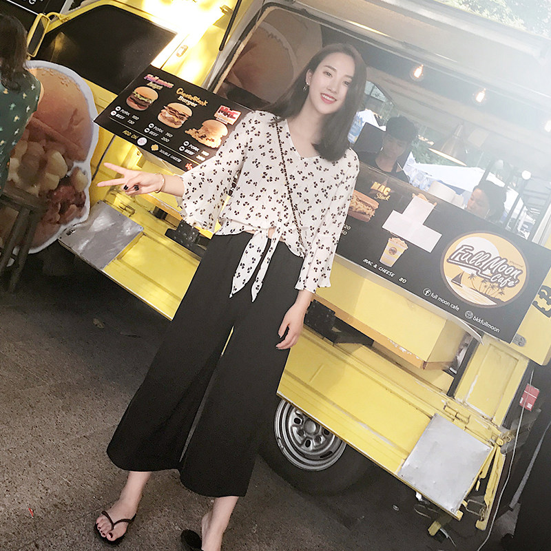 显瘦雪纺阔腿裤